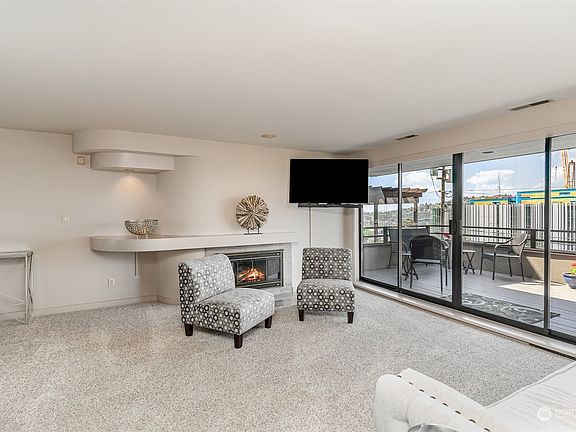 Quality built building, high-end architect, and impeccable design with awesome views of the Space Needle, Lake Union, the City & Gasworks Park. Zero common walls. Wonderful primary with walk in closet, jetted tub w/ marble surround & separate shower. Livingroom with gas fireplace & slider to super sunny 400 SF front patio deck – have fun! Gas-plumbed BBQ. Den with built-ins. Hardwoods throughout. Kitchen with eating bar & tons of granite. Two-car tandem secure garage. Private in-city living!