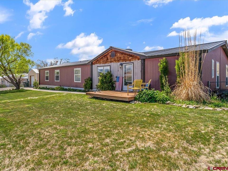 Welcome to your Colorado dream space! This updated 5-bedroom, 3-bathroom manufactured home in the charming town of Naturita, CO offers room to grow, invest, and breathe. Nestled on two city lots with two separate addresses, two water taps, and two sewer taps, this unique property is full of potential—whether you're looking for multi-family living, income property, or just a little extra elbow room. Inside, you'll find a spacious, light-filled layout with modern updates, a cozy pellet stove, and flexible living space perfect for families, remote workers, or guests. Step outside to a yard designed for fun—featuring a trampoline, swing set, fire pit with natural seating, and plenty of space to garden, entertain, or just relax under the stars. A detached garage and converted shipping container offer tons of storage space, room for projects, and there is still space for extra parking out back. Speaking of stars, you're in a designated Dark Sky Community—so expect jaw-dropping night skies and peaceful, small-town vibes just minutes from outdoor adventures, public lands, and the beauty of western Colorado.