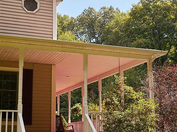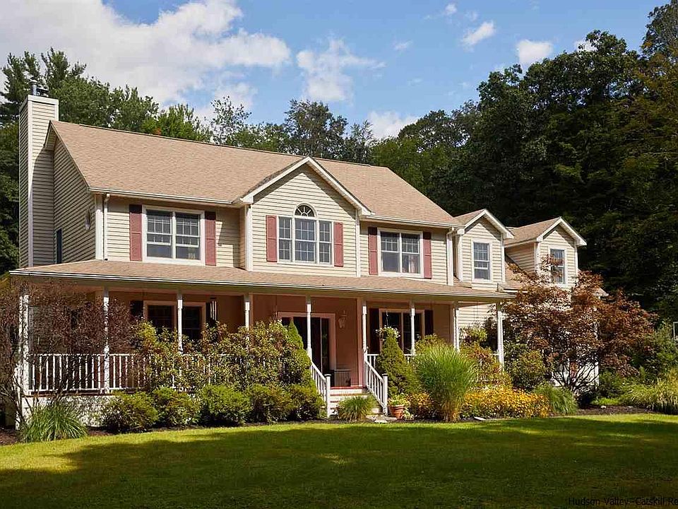 This lovingly maintained center hall colonial with wrap around front porch, screened in back porch, rear deck and patio really does have it all. The 5.5 acre lot has plenty of woods with old stone walls, just enough lawn for manageable upkeep and deer friendly low maintenance gardens filled with beautiful perennials. The flow of this home really just makes sense with the two car garage that leads into the kitchen and dining, living area with beautiful stone fireplace fitted with a highly efficient Pellet stove and solid wood floors throughout. Upstairs is the Main Bedroom with Zen office area with roomy walk in closet and full bathroom. Down the hall is another full bath, utility room and two, more than adequately sized, bedrooms. The fourth bedroom/ guest room/ home office/ whatever you want it to be, has a 1/2 bath and tons of natural light and space offering endless options. The fully finished walkout basement with second Pellet Stove provides great additional living space, currently used as work out area a media room but the options are endless.