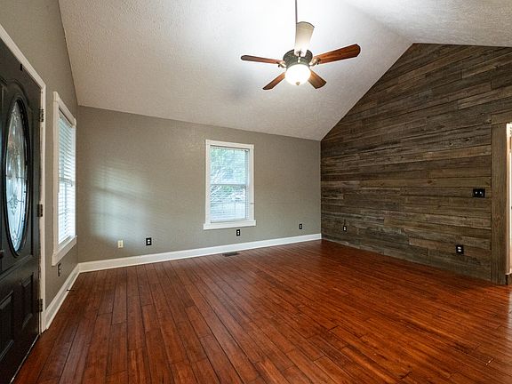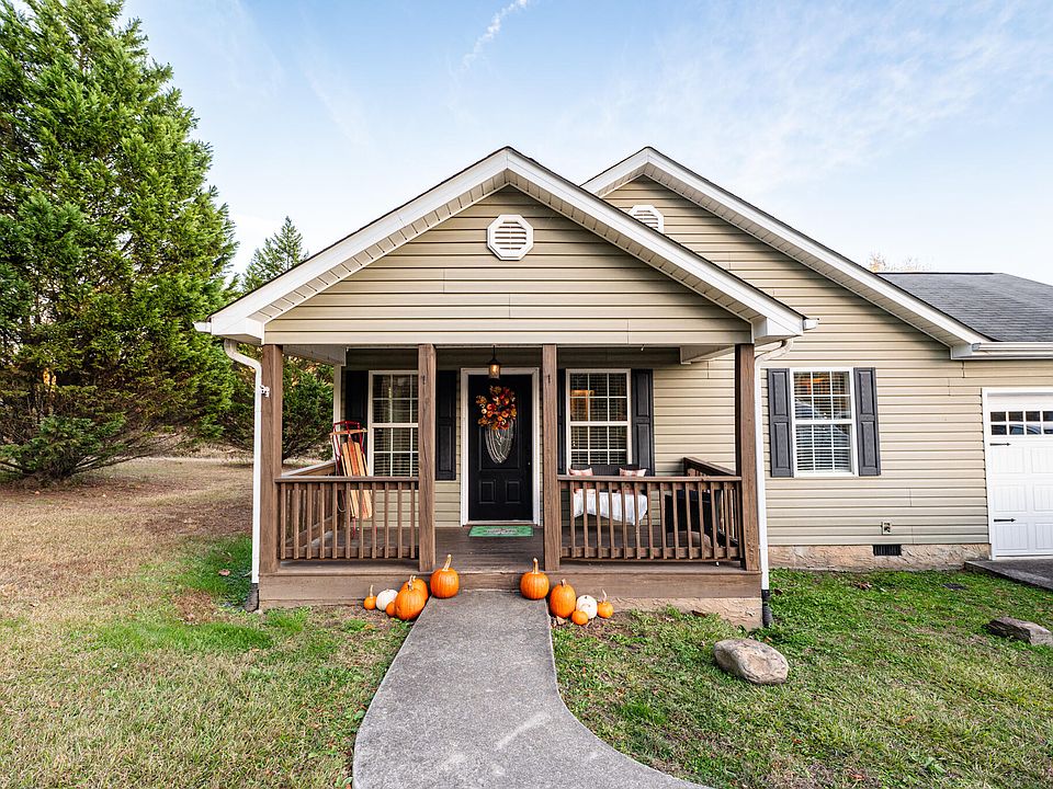 What a great STARTING PRICE! This very nice, move-in ready residence offers 3 bedrooms, 2 baths, and 1,490 square feet of comfortable one-level living in a great location! Built in 2007, this home features warm rustic wood tones throughout and a west-facing covered front porch perfect for warm afternoons and relaxing sunsets. Inside, the living room with cathedral ceilings opens into the eat-in kitchen, where you'll find an abundance of cabinets and counter space, along with a convenient breakfast bar with barstool seating, which is ideal for casual meals and entertaining. The spacious primary bedroom boasts a high ceiling for an added sense of openness. The bonus room provides flexible space for a home office, playroom, or hobby area. Enjoy outdoor living on the back deck overlooking the 0.45-acre, level backyard with plenty of room for children or pets to play. Additional features include a one-car front-loading garage and a location just minutes from downtown LaFayette's shopping, dining, and schools. Schedule your showing today before this one is gone!