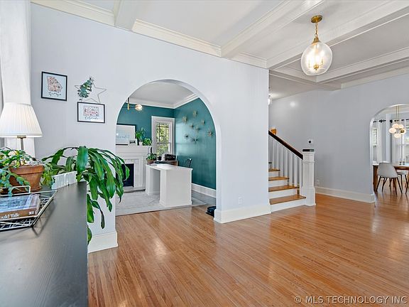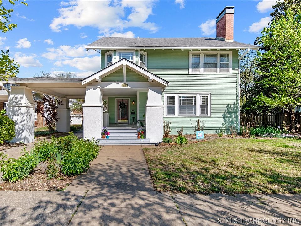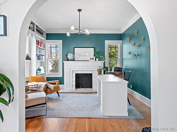 Located in the heart of Bartlesville, you can move into this charming craftsman style home without touching a thing! Beautifully updated, you'll love the modern amenities mixed with beautiful original details such as extensive custom molding and solid hardwood flooring. Spacious living areas are great for entertaining! Features include: Designated home office with decorative fireplace and built-in bookshelves. Updated kitchen with white cabinetry and granite counters. Spacious primary suite with sitting room and private bath. Huge bedrooms with good storage space. Beautiful solid hardwood flooring throughout. Detached two car garage with attached turnkey apartment with income potential. Apartment features kitchen and living and separate bedroom with full bath. Beautifully landscaped, the serene backyard features a spacious deck area perfect for backyard BBQ's or sipping your morning coffee.
