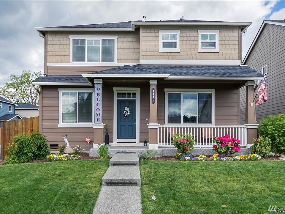 BE THE FIRST to view this CHARMING 4 bedroom home on a corner lot! Well-maintained home, still under Warranty! Open concept with many beautiful features throughout. Quaint kitchen w/tile counter tops,SS appliances,brkfst bar.Large picture windows Trac lighting Wainscoting in hallway leading to back door & stairs to 2nd floor.Huge mstr bedroom w/mstr bath & walk in closet.Tankless water heater.Lots of storage space. Adorable fully fenced back yard.Close to parks and Orting Trail! A MUST SEE Home!
