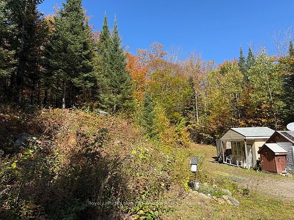 12.6-Acre Private Retreat in the Almaguin Highlands. Discover the peace and natural beauty of the Almaguin Highlands on this 12.63-acre property, perfectly situated just 10 minutes from Burks Falls and minutes to public access on Lake Cecebe. Surrounded by mature forest and abundant wildlife, moose, deer, ducks, and herons often pass through the land offers a serene mix of wooded trails, a cleared building site, and rising terrain at the back for sweeping views. A level driveway leads to on-site features including a trailer with 2025 permit (sold as is), an insulated shed, storage building, welcoming fire pit, and 200-amp hydro service. The soil is primarily sand and rock, and year-round access is assured via a municipal road on a school bus route. Conveniently located between Burks Falls and Magnetawan, this private sanctuary is ideal for your future residence, recreational retreat, or simply enjoying the peace and wildlife of northern living.