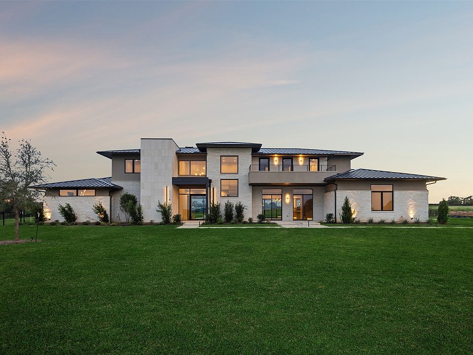Welcome to an architectural masterpiece in Bartonville’s prestigious Eagle Ridge, designed by Lingenfelter Luxury Homes, where 6,977 square feet of inspired design & craftsmanship redefine luxury living. Perfectly set on more than 2 acres of fully irrigated & landscaped grounds framed by mature trees & a secure fence, this 5-bedroom estate combines sophistication, comfort, and unrivaled lifestyle amenities in a setting of privacy & prestige. A striking Iron & Glass front door & window wall invite you inside, where soaring ceilings, 5 inch White Oak HW & walls of windows bathe the open, flowing layout in natural light, seamlessly blending indoors w-outdoors. Chef’s kit is the heart of the home, appointed w-Wolf gas cooktop, dual ovens, quartzite, Sub-Zero refrigerator + Butler’s pantry. Entertain w-ease in the expansive living room anchored by a grand stone FP, the game room, or the dining area w-dual wine refrigerators. Primary suite is a retreat unto itself, offering a spa-worthy bath w-garden tub, dual vanities, coffee bar + dual custom closets. Each bedroom boasts its own en-suite bath. Distinctive features include a Classic Series LLT-952 Traction Elevator, Phantom Screens, a dedicated office, exercise room, fire sprinklers + a 5-car garage. Climate control is uncompromised w-4 multistage Lennox HVAC systems, linear slot diffuser grills + a fully encapsulated foam AC envelope. Outdoors, a standing seam Class 4 metal roof shelters the home while multiple patios—one with a full outdoor kitchen featuring a 42 inch Coyote gas grill + fridge—set the stage for year-round entertaining. Resort-inspired backyard boasts a temperature-controlled pool + heated spa, an outdoor brick FP & tranquil spaces designed for relaxation. Ideally located in Eagle Ridge, residents enjoy proximity to Argyle ISD, Liberty Christian, Ponds, acclaimed dining at Marty B’s, premier golf at Denton Country Club & Lantana Golf Club + the recreational waters of Lake Lewisville & Lake Grapevine.