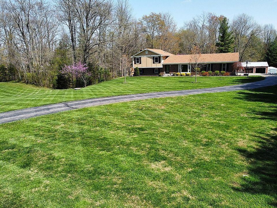 This inviting home sits on 4 acres of yard and woods, complete with a 1/3-acre pond and dock- perfect for fishing or relaxing. You’ll love the 24x32 pole barn and 12x24 shed with a lean-to, offering plenty of storage for tools, equipment, or outdoor toys. A large deck overlooks the backyard, and the walkout basement opens to a patio with a built-in firepit- great for entertaining! A paved driveway leads to the attached 2-car garage with an extended concrete pad for extra parking. Inside, you’ll find 3 bedrooms, 2 full baths, 2 half baths, and a newly finished basement- offering plenty of space for family and guests. The main living area features a bright skylight and a huge bay window that fills the space with natural light, creating a warm and welcoming atmosphere. This property combines comfort, space, and country charm while still being close to town!