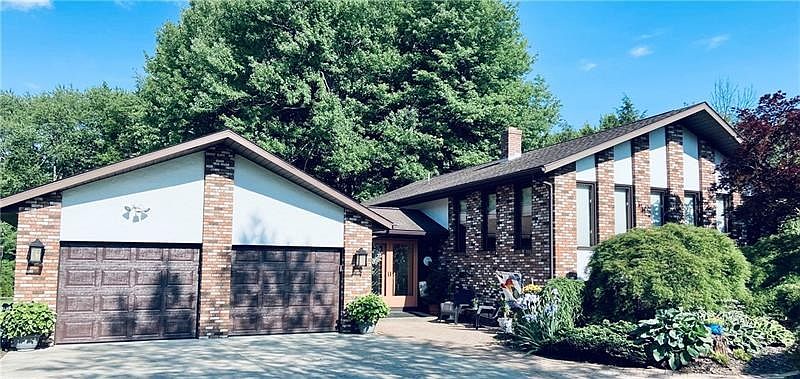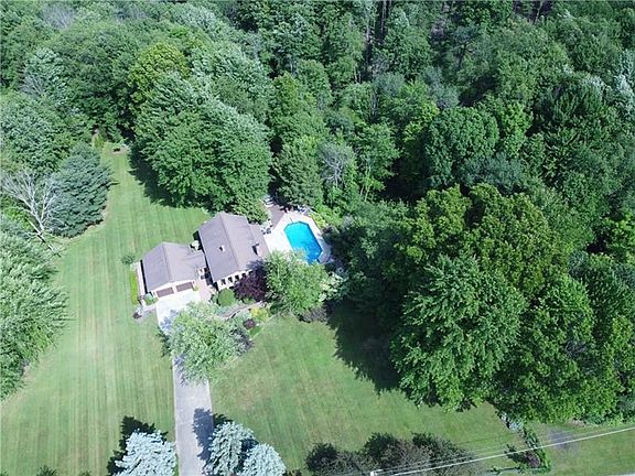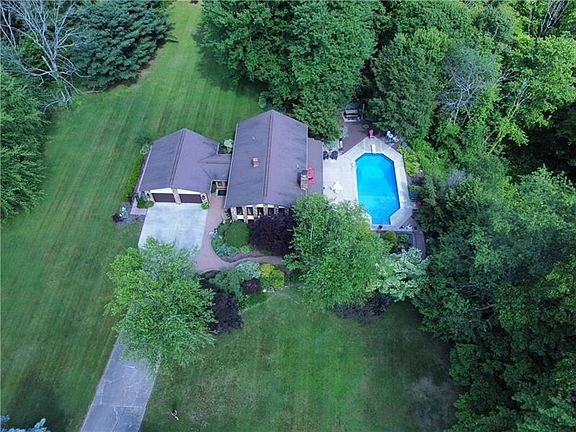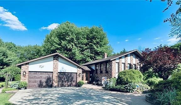 Beautiful split level 4 bedroom home with many updates! Private setting on 2acres meticulously landscaped with brick walkway, newly installed retaining wall. Resort like back yard with a 18x42 pool. The back patio enters into the lower level featuring a custom stone wall, fireplace, and full wet bar. Other updates include: new chimney pointing, garage doors 2020, coach lighting on exterior 2020, new interior lighting in kitchen & primary bedroom, 30 yr shingles installed 17yrs ago, furnace 2014, hot water 2020, refrigerator & washer approx 2019. Well maintained home awaiting your updated touches!