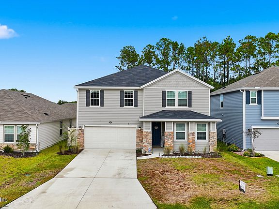 Welcome to this stunning 4-bedroom, 3-bathroom home built in 2023 by KB Home, located in the desirable Copper Ridge community in the Oakleaf area. This modern residence showcases an open-concept layout and elegant upgrades throughout.