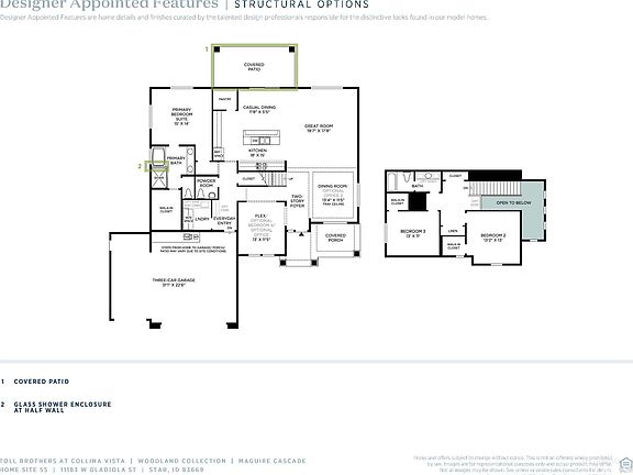 "The Maguire". This gorgeous home features an open floorplan flowing from the entry through the great room and kitchen with formal dining room. Kitchen features large island with breakfast bar and tons of cabinet space, stainless steel appliances and a sliding door to the covered patio. Coveted main floor primary suite with dual sink vanity, separate tile shower and soaker tub, and large walk in closet. Downstairs also find a formal dining room, large great room and a flex room, perfect for home office or play room. 2 spacious secondary bedrooms upstairs for privacy. 3 car garage. Photos are similar and may reflect options not available at this price. BTVAI