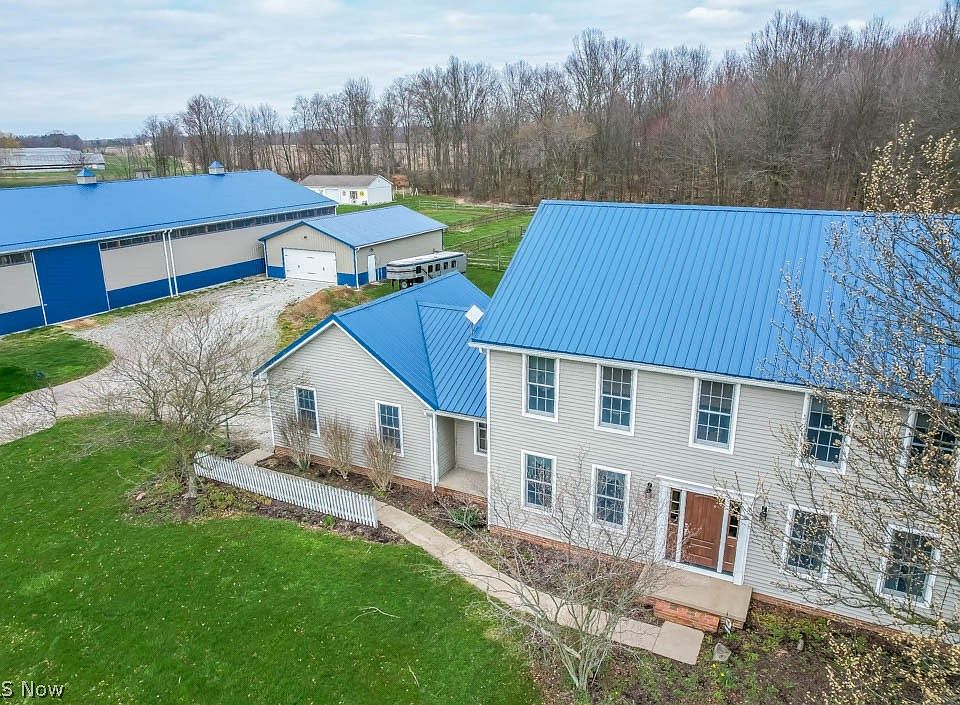 Attention horse owners! Your dream property awaits with this 4 bedroom home on 3+ acres, complete with two outbuildings tailor made for your horses! Step inside the center hall colonial to discover a cozy foyer leading to a living room with a fireplace and a formal dining room featuring a tray ceiling with crown molding. The kitchen offers ample cabinetry, stainless steel appliances, a center island with a cooktop, and a dinette with access to the rear deck overlooking a pergola-covered patio with a firepit. Convenient 1st floor laundry and a guest bath complete this level. Upstairs, find all bedrooms, including a master suite with a fireplace, full bath, and walk-in closet. The secondary bedrooms share a full bath in the hall. Additional living space awaits in the full basement, ideal for a rec room and a bonus room that could be used as an office or 5th bedroom. Outside, enjoy the rural setting with a 30' x 40' garage, a 56' x 120' horse barn with 3 stalls, a feed room, and an arena plus a 60' x 135' fenced pasture! Cherished by the same family for nearly 20 years, this property has been well-maintained with newer flooring, roof, HVAC, and more. Don't miss this once-in-a-lifetime opportunity; call today!