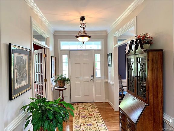 Welcome to this amazing 4 bedroom 2 1/2 bath Cape Cod! Here are just some of the features: Chef's kitchen with cherry cabinets, granite counters, stainless appliances including 2 ovens, island and large breakfast area; huge Great Room with cathedral ceiling open to second floor balcony, surround sound system, and vented gas fireplace; first floor master suite with jetted tub, separate shower and separate water closet; dining room has Palladian windows, picture frame wainscoting, crown moulding and a tray ceiling; hardwood floors throughout the first floor; and an alarm system. The home also has a finished detached oversized 2-car brick garage with large storage area on the second level, a brick paver patio, large deck, rear fenced area, paved driveway, a generator, 2 water heaters, a newer well pump, underground electric, and mature landscaping that includes numerous varieties of fruit and deciduous trees and flowering shrubs that is irrigated with 70+ heads and also provides a wooded path. This beautiful home is located just across the Henrico line in Hanover close to all that Short Pump has to offer.