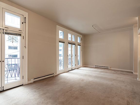 This 2 bedroom condo boasts high ceilings and French doors in every room. The kitchen has been updated with stainless steel appliances and granite countertops. Both bedrooms are on the NE corner of the building overlooking 1st Ave. The master bedroom (12'9"x12'6") has a large double closet & second bedroom (10'x12'6") has loft space for extra storage. Full bathroom w/linen closet. Stackable washer/dryer in unit. Exterior storage closet included in rent along with w/s/g service. Parking available in the adjacent garage for an additional fee. Terms: 1st & 1 month security deposit; 12+ month lease. No smoking. No pets.