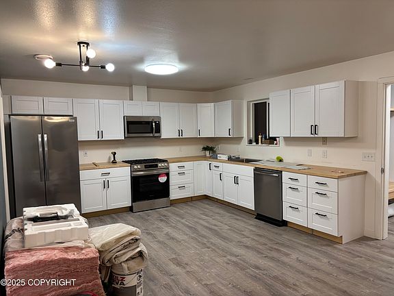 Looking for a beautifully updated home in a central location? This spacious 4 bedroom, 2 bath home w/1car garage offers modern upgrades such as new kitchen cabinets, butcher block countertops, stainless steel appliances, pantry! New Luxury Vinyl throughout the home & carpet in bedrooms. Enjoy cozy & efficient in floor heat, beautiful arctic entry. Updated bathrooms. Move in ready, only 10 yrs oldThe garage is long enough to park a truck! Plenty of parking for RV on side of home. Outdoor bonus: rhubarb, raspberries, apple trees in your own yard!