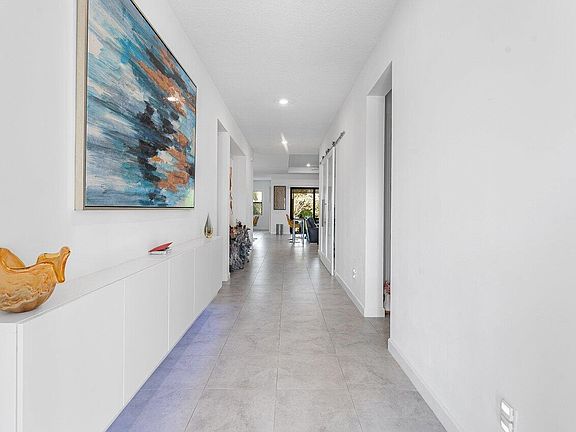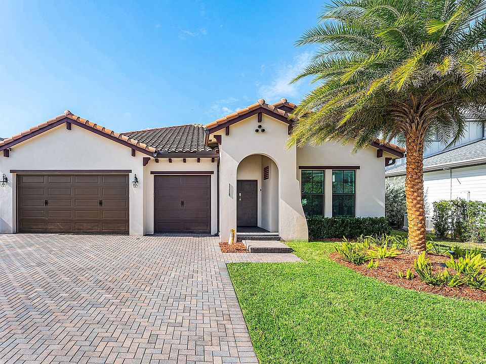 The Messina model, Spanish elevation, is a beautifully designed single-story home offering 2,631 square feet with three bedrooms, three bathrooms, and a three-car garage. This fully tiled residence sits on an oversized lot positioned at the entrance of a quiet cul-de-sac and features impact-rated hurricane windows, a whole-house generator, and thoughtful upgrades throughout. The open floor plan includes custom built-ins and a versatile flex room with built-in cabinets and storage, ideal for a home office. The guest en-suite bedroom offers a Murphy bed for added flexibility. A screened-in patio provides comfortable outdoor living with room for a future pool. The kitchen is equipped with a stainless steel appliance package and opens seamlessly to the main living areas, creating an inviting space for everyday living and entertaining. The upgraded laundry room includes a utility sink, refrigerator, and an additional storage closet for convenience. The three-car garage features epoxy-coated floors and a ceiling-mounted storage system designed for maximum organization.