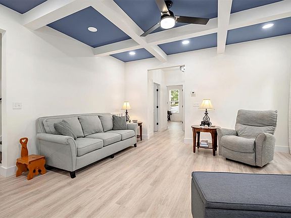 Discover the charm of this stunning, newly constructed home nestled in a prime spot between Easley, Pickens, and Greenville. Set alongside the peaceful Rices Creek, it strikes the perfect balance between seclusion and accessibility. The property features a main lot of 0.9 acres and an extra 1.48 acres, offering plenty of room for outdoor enjoyment and future projects. Upon entry, you'll notice an inviting open floor plan with elegant coffered ceilings in the living area. The kitchen is a standout, with white solid wood cabinets, a sleek gray island, stainless steel appliances, a walk-in pantry, and beautiful quartz countertops. The main floor is designed for comfort, featuring a master suite with a custom-tiled walk-in shower, double vanity, and a spacious walk-in closet with solid shelving. A second bedroom on this floor ensures a nice separation from the master suite. Upstairs, there are two additional large bedrooms, a flex room, and a full bath. High ceilings throughout the home add to the feeling of openness, while matte black faucets and light fixtures provide a contemporary flair. With ample storage in the walkable attic and a serene creek nearby, you'll enjoy a peaceful setting while being just minutes from the scenic Lake Keowee. Come and see how this spacious yet cozy home can become your perfect retreat.