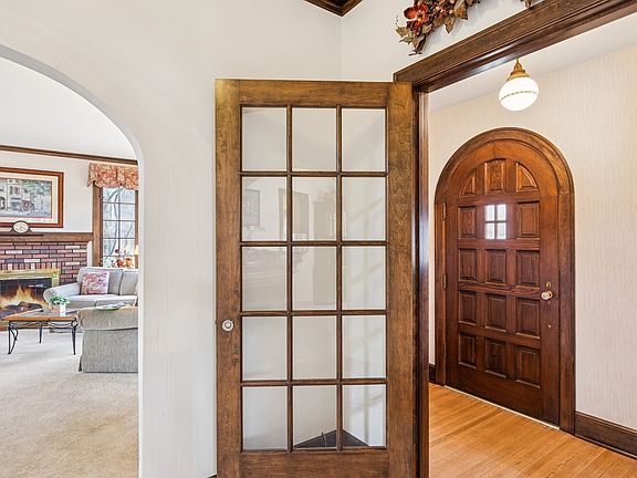 This is a true classic Tudor Revival, where steep gables, rich brickwork, and arched entryway set the scene. This wonderful brick home turns heads on a double lot, with gorgeous mature trees. Inside this storybook home, first floor has 9 foot ceilings, and all the details you'd want in a that dates back to the 1920's. The first floor has a large living and dining room, plus an eat in kitchen and separate pantry. Also on the first floor is a bright office and a 3 season room lined with windows on all sides. Upstairs you'll find hardwood floors in all three bedrooms, plus a lovely and bright full bath. The basement is unfinished and waiting to hold be used as ample storage or a workshop, or for you to put your own finishing touches on and add additional living space. The home's driveway is all victorian bricks, a true gem of a detail! All this plus the double lot with stunning trees, and a playhouse for little imaginations to run wild. The homeowners have restored or replaced just about everything in this home, inside and out; you truly could not ask for a more well-loved and cared for home!