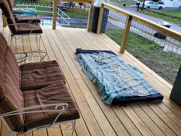 Enclosed front porchFully fenced yardRoomy houseLarge bedrooms