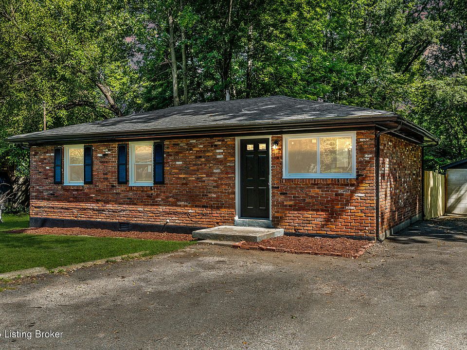 Welcome home! This vigorously-updated, 3 bedroom, all-brick, move-in ready ranch sparkles like new, but without the new cost! The interior features a spacious, naturally-illuminated family room, partially open (via a serving hatch) to the recently-renovated eat-in kitchen, itself boasting new countertops tastefully accented by lovely dark cabinetry below and brilliant white cabinetry and backsplash above. Gorgeous hardwood flooring runs throughout the family room and part of kitchen, continuing down the hall and into the 3 sizeable bedrooms. Meanwhile, the completely-remodeled full bathroom features an updated vanity, a ceramic tiled tub/shower, and a ceramic tile floor. A laundry room, conveniently located across from the kitchen completes the interior. Just off the kitchen and overlooking the shaded, sprawling, fully-fenced-in backyard of this generous 0.4 acre lot is the relaxing back deck, creating an ideal space for hosting summer barbecues or simply unwinding after a long day. An oversized driveway provides ample parking, while the detached 2-car garage offers abundant storage space, as well as the possibly of a workshop or hobby area. This home is conveniently located near a practically endless list of shopping, dining, and entertainment, as well as I-65 and Preston Highway, placing the entirety of Louisville at your fingertips. Schedule your showing today!