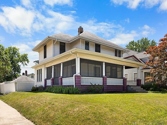Imagine spending your summer evenings on the expansive screened-in front porch of this classic Foursquare home, conveniently located in the heart of the city with the historic Wallace Triangle neighborhood. Just minutes away from downtown restaurants, shopping, and Purdue University, this 1920s gem retains its charming details, including hardwood floors, moldings, original pocket doors, and leaded glass windows. The main level features a generous living room, kitchen with modern stainless steel appliances, and a formal dining room perfect for entertaining. Upstairs, you'll find three bedrooms, walk-in closets, and a full bath featuring a vintage clawfoot tub. The property also boasts a fully fenced backyard for privacy and a detached two-car garage. While inspections are welcome, the home is being sold as-is. Total square footage is based on county records.