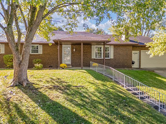 Beautifully updated 3 bedroom, 2 full bath ranch home in incredible location minutes away from the high school and elementary school, Baker Park and pool, restaurants, nature reserve and more! Engineered hardwoods throughout the main living spaces! Huge living area includes stacked stone masonry fireplace and built-in bookshelves. Fully fenced in back yard, large garage with ample space for storage. Primary bedroom includes two closets and an en suite full bathroom. Main full bathroom includes an oversized tub and double sinks! Laundry room includes a utility sink. Fresh paint throughout!