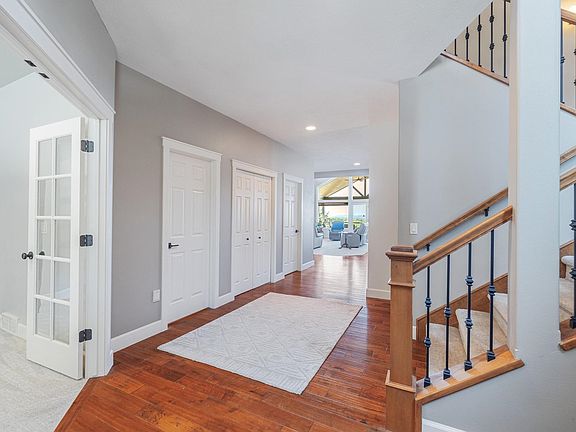 Discover the ultimate in luxury living at Liberty Lakes prestigious Estate at Meadowood! This exceptional home offers breathtaking views of the golf course, ponds, mountains and city lights. Featuring 6 bedroom and 5 bathrooms, designed with an open airy floor plan perfect for modern living. The grand great room and formal dining area showcase soaring ceilings, a stylish fireplace and expansive windows that flood the space with natural light. The chef's kitchen is a dream come true, with top-of-the-line stainless steel appliances, beautiful granite countertops and ample cabinet space. The main floor is home to the luxurious primary suite, which boasts large windows with golf course views, double walk-in closet and spa like en-suite bathroom with a heated floor! Upstairs you'll find 4 additional bedrooms and 2 bathrooms, offering plenty of space for family and guests. The daylight lower level is an entertainers dream with a recreation room, kitchenette, gym area and additional bedroom and bathroom.