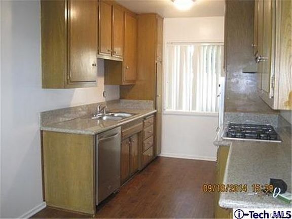 Unusually large mid-century front unit in prestigious Rossmoyne area of Glendale has 1599 sq.ft., 3 BR, 2 BA. New laminate floors throughout, new granite counters in kitchen. Separate dining area opens out to private patio perfect for your morning coffee or evening glass of wine. Built in desk with double clothes closets in one bedroom. Dressing area outside master bedroom has wall of closets and built in vanity perfect for primping. Central air and heat. Private driveway with 2 car garage. Washer /dryer hook-ups in the garage. Owner pays water and trash. Tenant responsible for all other utilities. Sorry, no pets, no smoking and good credit, please.