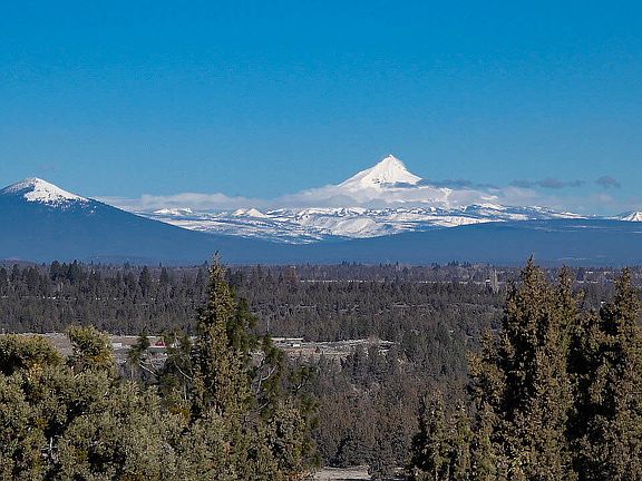 Spectacular panoramic Cascade mountain views and evening sunsets in private setting nestled among the pine trees on Awbrey Butte. Entertain on the expansive no maintenance front deck or private back covered patio.  Large open great room with soring coffered ceilings and windows brings the outdoors in. Immaculate custom home with exceptional quality with metal clad windows and doors.  Newly remodeled chefs island kitchen with quartz counters. Main level owner's suite with 10' coffered ceilings overlooking the Cascades.  Bathroom with jetted spa tub and tiled shower. Additional bedrooms with Jack n Jill bath. 4th bedroom is very large being used as media/bonus room and opens to back covered patio.  Oversized 4-car garage with shop area, 1/2 bath & large storage room (garage and storage room approx 1,200 sq ft). Heated driveway and patio wired for hot tub.