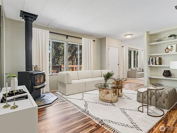 Welcome to Wandering Creek a gated community for those 55 years and over. Community features include: Clubhouse, lake, trails, greenbelts, RV parking, on site HOA office & manager, clubs and activities. Great location at the end of cul de sac that overlooks a community greenbelt. Formal living room w/vaulted ceiling & dining rm w/built in hutch. Large kitchen has an eating area and opens to family rm w/ a woodstove. Master bdrm suite features a walk in closet & full bath. Main floor includes a 2nd & 3rd bdrm & a 2nd full bath, plus a utility room with full size washer & dryer. Updated heat pump w/AC. Private deck overlooks greenbelt. Attached tandem 2 car carport with storage shed/shop. Contact agent for gate access info.