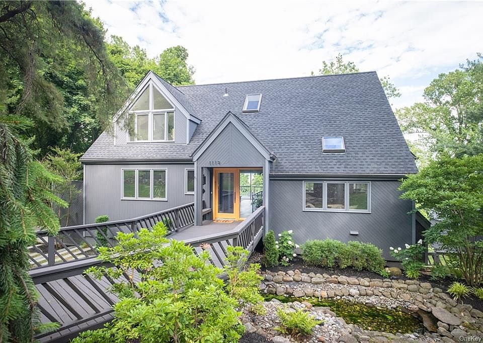 Custom multi-level Modern home, privately set above the Hudson River with striking views and mid-century vibe, and just 18 mi from NYC. Built in 1987 & tastefully re-designed with luxury details that combine soaring ceilings with wood, metal, and glass in an unabashedly artistic manner. Enter this personal retreat from a bridge over koi pond into the light filled open floor-plan. Three levels of living incl. 3 BR and 2.5 Ba. center around impressive staircases, both inside and out, intermingling the exterior with the interior. Chef s kitchen of walnut cabinets, Meile appliances, wine cooler and built-in coffee system connect w/ dining and living areas against walls of windows and vaulted ceilings. Expansive multi-level decks are perfect for solitude or entertainment. Owner s Suite features spa bath and outstanding views. Two BRs on lower level, w/ full bath, laundry, 2 car garage and ample driveway parking. Property has access to Rails-to-Trails path, to new TZ Bridge Path & Villages.
