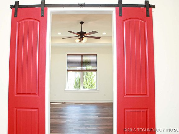 PRICE IMPROVEMENT. Welcome to gated Hyde Park at Tulsa Hills. Full brick move-in ready home in upscale 55+ community. Nice office with barn doors. Great room, open floor plan, quartz kitchen & breakfast room. Charming screened in porch! Primary with spa-like En-suite bath, double vanities, tub & separate shower. Large walk-in closet links to laundry room & safe room. Incredible clubhouse for activities with picketball courts, game room for Mah Jongg, cards & more. Library, fitness center, pool, tennis courts and a putting green. HOA covers full lawn maintenance, Close to Tulsa Hills shopping & restaurants. Must see!