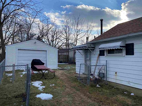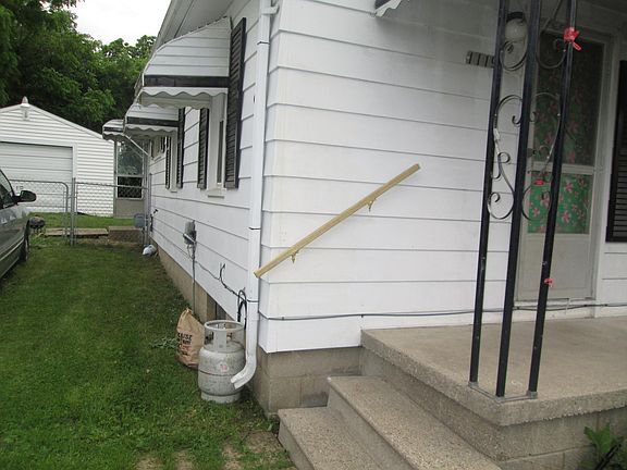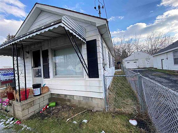 Cute bungalow style home with 1144 sq ft. two bedroom one bath with laminate floors covered front porch and 1 car detached garage.