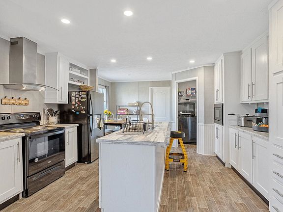 Welcome to this well-maintained 16x80 mobile home situated on a beautiful 2-acre tract, offering the perfect blend of comfort, functionality, and room to roam. This 3-bedroom, 2-bath home features a thoughtfully designed split floor plan and a stunning chef’s kitchen that’s ideal for entertaining and everyday living. The kitchen boasts ample cabinetry, generous counter space, and room for hosting family and friends. The primary suite offers a private retreat with an en-suite bath, while two additional bedrooms provide flexibility for guests, a home office, or growing households. Outside, enjoy the added convenience of a covered parking awning, providing protection from the elements. A storage shed offers extra space for tools, equipment, or hobbies.