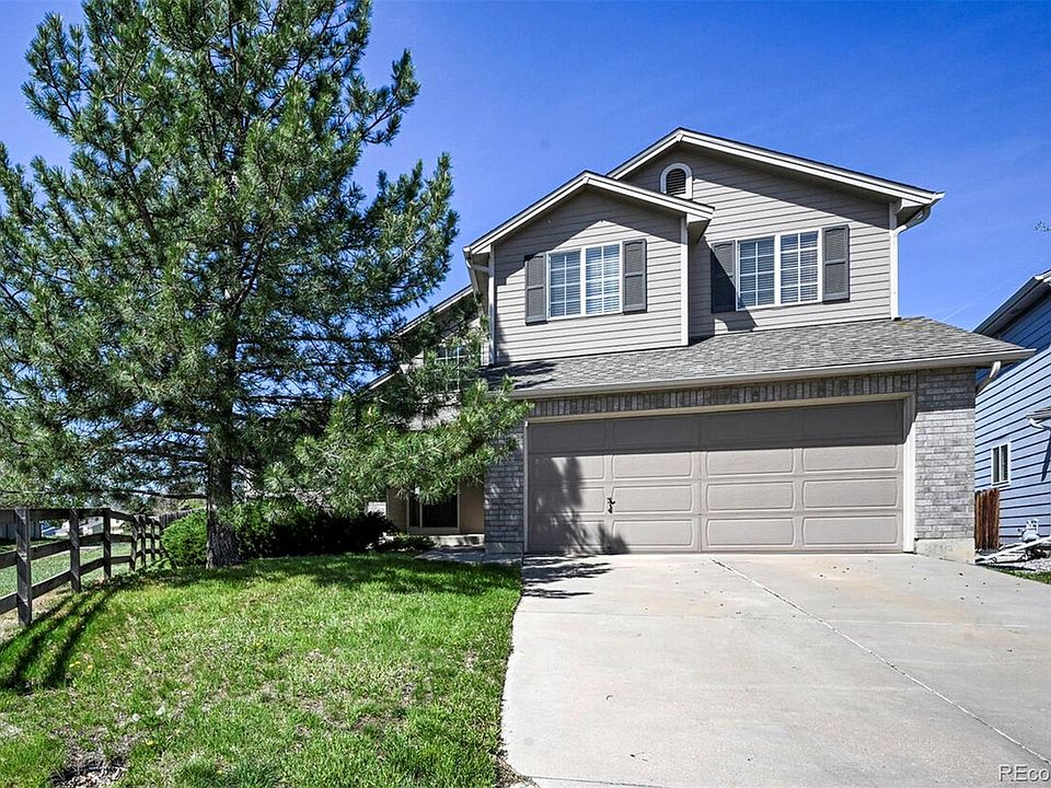 Brand new sprinkler system and 5-year roof certification!  This beautiful home sits peacefully on an incredible view lot, backing and siding to a neighborhood greenbelt.  This lovely two-story with first-floor living is nestled in the heart of Sunrise Creek and provides a unique opportunity to live in a popular floor plan that seamlessly connects the inside with the outside, taking perfect advantage of the incredible location. Nicely maintained and ready for your personal touches the main-level is bathed in natural light that streams in through the abundant windows, further enhanced by the soaring vaulted ceilings. The open kitchen flows nicely to the adjacent family room which is highlighted by a gas fireplace and huge picture window with views of the backyard and greenbelt. Step outside to appreciate the wonderfully private backyard with its greenbelt setting and mountain-top views. What a special place to spend your time. The main level primary bedroom boasts an en-suite 3/4 bath, walk-in closet and views of the lovely setting. A formal dining room and laundry room round out the first floor. Venture upstairs to 3 additional bedrooms serviced by a full bath and a large loft that provides a flex space to suit your specific needs - The spacious basement is unfinished and ready to be built out, should you so desire. Easy access to the neighborhood trails. Take a walk out your front door to Blue Heron Park (less than 1/4 mile) or Sunrise Creek Park (1/2 mile). Just a few miles to Bear Creek Lake Park - Easy access to C-470 - This is a great opportunity to own a nice home in a very special location!