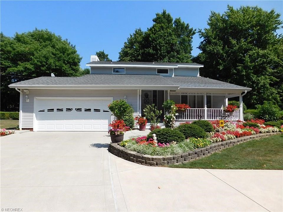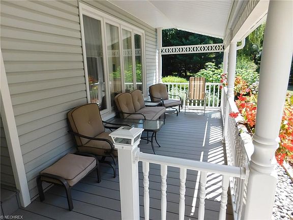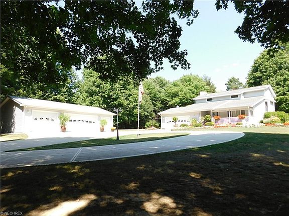 Welcome this meticulously maintained Chesterland home on 1.63 impeccably maintained acres! Drive up the concrete driveway (2007, 2010) with circular turn-around past the flagpole and separate 3 1/2 car detached, insulated garage (2008) to this beautiful front porch (2014) conventional/colonial home, dressed with incredible plush floral landscaping inside custom pavers. Enter the front foyer off the front vaulted living room flowing back to the open rear floor plan. Enjoy gourmet cooking in the remodeled eat-in kitchen (2010) with custom cherry soft close cabinets, additional lighting, huge island, granite counters, upgraded faucet/instant hot (2016) and stainless steel GE Profile appliances. Kitchen is wide open to the family room with newer laminate flooring running throughout (2014) complete with surround sound and wall mounted TV included! The adjacent four season sun rm (2012) will amaze you, well constructed with footers, R22 insulation in the walls and separate HVAC unit. 3 BRs on the 2nd floor with two updated bathrooms (2014) and newer flooring (2014) including master suite with master bath and two walk-in closets, one of which 16'x7' added with the sun rm addition. Finished recreation room and office in basement. Enjoy summer entertaining or personal privacy on the paved circular patio and circular hedged garden with bird bath. Water treatment equip. updated (2013-14). New insulated door and opener on attached garage (2016) and so much more! Welcome Home!