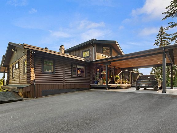 Welcome to your private paradise! This spectacular custom 4,188 sqft log home features 180 degree panoramic views while nestled on a sprawling 5.01 acres. Incredible wood work through out the home. Tons of natural sunlight into games room, kitchen and large living room with vaulted ceilings. Upgraded kitchen with pantry is an entertainers dream with Dacor appliances, an expansive island and a dedicated eating area. Primary bedroom is on the main floor with a walk-in closet and a spacious ensuite bathroom. In the basement, the laundry and 2 bedrooms with a full bathroom await as well as a spacious living room. The property also includes a 2,780 sqft detached heated garage with 3 bay doors with space for RV parking inside w/200amp service. Amazing outdoor lighting throughout the property.