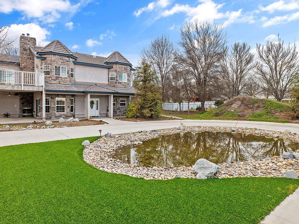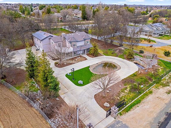 This beautiful, custom, two-story home sits on nearly 2 acres of serenity. It is perfect for the family that needs to be close to town, but wants to experience country living. It is an entertainer's dream, with a large fountain, and two koi ponds; as well as a large, covered, back patio and and additional front patio, with a bi-directional fireplace that also keeps the family room warm on cold nights. The kitchen is equipped with stainless steal appliances and a built-in refrigerator. The countertops are granite, with space for barstools. There is a bedroom and bathroom on the first floor that is perfect for guests. The master suite hosts a beautiful view from the sliding glass door and balcony. There is also a second fireplace that turns on with the touch of a switch. The master bath includes a laundry chute and also has a large shower, with a separate, jet tub. The spacious walk-in closet includes a second room that could be used as a second closet, or extra storage. The remaining three bedrooms are spacious, and one is office ready! This home also includes energy efficient upgrades, such as 6 attic fans, 5 solar tubes, extra attic ventilation, a whole house fan, Milgard windows and dual A/C units. It also has a 4 car garage and owned solar. It is definitely a MUST SEE.