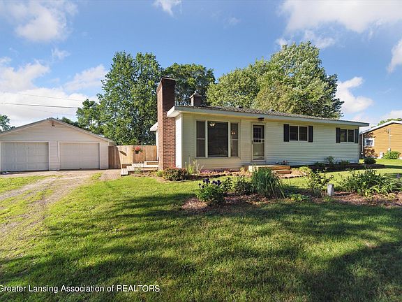 HIGHEST AND BEST DUE BY 6/25/24 at noon. Welcome to this beautiful ranch style home located just a few miles out of town and only a 1 mile from Eaton Rapids Public Schools. This home features a remodeled kitchen with open shelving, cabinets up to the ceiling, and a built in knife magnet. You'll be in awe of the brightness of this kitchen. The bathroom was also remodeled with shiplap, vinyl flooring, new tub surround and open shelving for storage. The back yard is fully fenced in with a large garage and a back deck for entertaining or relaxing after a busy day. Furnace was replaced in 2010, electrical panel was replaced in 2023, new 200 foot well was drilled in 2015, water heater was replaced in 2015. Welcome to your new home!