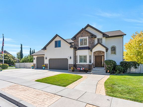Welcome to this stunning luxury two-story home in the heart of Highland, perfectly situated at the mouth of American Fork Canyon with easy access to breathtaking mountain scenery, hiking, and outdoor adventure. This thoughtfully updated residence combines timeless craftsmanship with modern upgrades, offering the perfect blend of comfort, style, and functionality. Inside, you'll find real wood plantation shutters throughout, Tasmanian oak flooring on the main level, and travertine tile in the laundry and bathrooms. The home features newer carpet with upgraded extra-thick pad, three-tone paint, and 8-inch baseboards for a polished, high-end finish. A 2025 renovation of the upstairs bathroom includes a new tub, tile shower surround, flooring, and commode, ensuring fresh and modern design. This is an open space community. Highland City owns the parks and trails. The kitchen, laundry, and bathrooms are adorned with beautiful knotty alder cabinetry, while the mudroom is equipped with six full-size enclosed alder lockers with undermount drawer storage-perfect for keeping everything organized. The primary suite is a private retreat, complete with a flex-space alcove ideal for a home gym or reading nook, a luxurious ensuite bathroom, and a huge walk-in closet with upgraded cabinetry, closet organizer system, and even a second laundry with stackable washer/dryer. Three of the four bedrooms feature walk-in closets, adding both convenience and storage. Recent upgrades include a new 50-year architectural shingle roof (2022), a smart whole-home Ecobee HVAC system with air purifier (2022), and fresh exterior paint in a light, bright palette. The 4-car garage is designed with extra height-including a 10 ft garage door and 12 ft ceilings-plus additional RV parking. Outdoors, enjoy a fully fenced yard with a stamped concrete patio, built-in fire pit, children's Lifetime play set, and an in-ground trampoline-perfect for both relaxation and entertainment. This remarkable Highland home is not just a residence but a lifestyle-nestled near scenic trails, parks, and recreation while offering every modern upgrade for comfort and peace of mind.