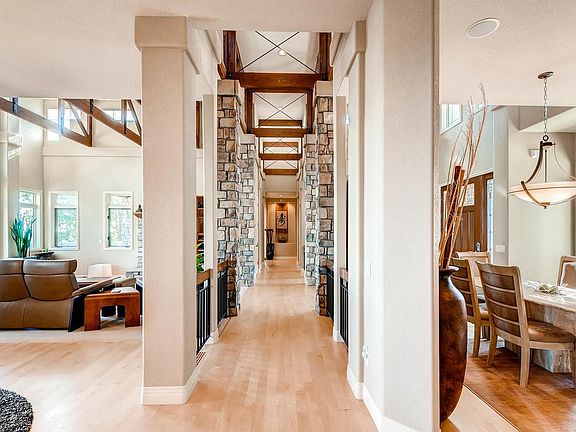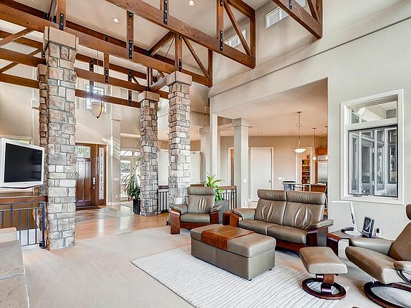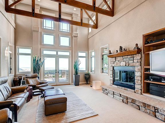 Beautifully updated ranch style home w/ amazing views of the expansive horizon from Pike National Forest to downtown Denver and Chatfield State Park to the DTC. Stone & stucco finish exterior and interior boasts 17' ceilings, hardwood floors, solid core doors w/ upgraded hardware, stone columns, granite & stainless kitchen w/ walk-in pantry, cooking island & compactor, formal dining room, laundry/mud-room w/ large closet, great room w/ access to trex deck (plumbed for natural gas) and a private area off the master suite, plumbed for hot tub! Five bedrooms, 5 baths and wired throughout for internet, cable and sound w/ outdoor speakers on the deck. The walkout has a lighted art niche, media room w/ 5.1 Dolby surround sound (2 zones), granite wet bar w/ slate floors & cherry cabs, flex space/recreation area, three bedrooms, one full & one 3/4 bath as well as two large storage spaces. Dual water heaters, dual HVAC units, security system w/ monitor, cameras & DVR stays, too!