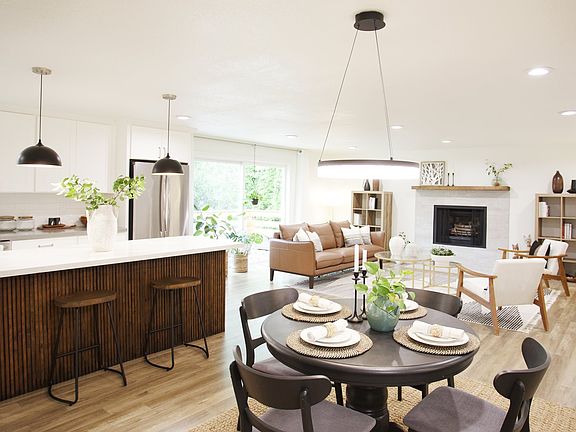 Beautifully updated and remodeled open-concept home nestled in desirable Happy Valley, Sunnyside, Clackamas! This light-filled residence on a level lot showcases recent interior and exterior paint. Welcoming you is a solid mahogany front door. The sleek, modern kitchen boasts soft-close cabinets, quartz countertops, stainless steel appliances, and a spacious 4-seater island crafted for gatherings. Both bathrooms have been tastefully renovated with tiled walls and flooring, new bathtubs, and fixtures. The primary suite features a ClosetMaid closet system. All closet doors are solid pine wood with a rich walnut antique finish. Enjoy peace of mind with a newer roof, flooring, and windows, complemented by meticulously landscaped grounds. The backyard oasis includes Honey Crisp and Golden Delicious apple trees, Asian Pear trees, a large Bartlett pear tree, and blueberry bushes. Overlooking Mount Talbert, the back deck provides serene views of the green space behind the home. Additional highlights include a forced air gas HVAC system with central A/C and an oversized 2-car garage offering ample storage space. Highly rated schools nearby!