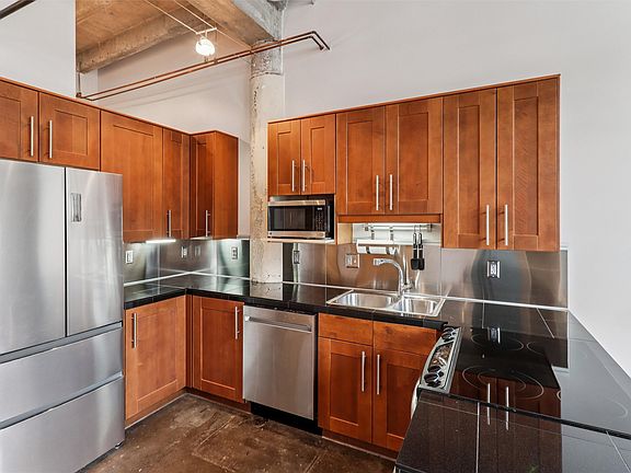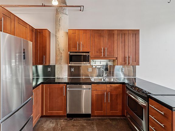 Experience true loft living in this stunning top-floor residence offering historic industrial character paired with thoughtful contemporary updates. Featuring concrete floors, exposed brick and ductwork, soaring 16' ceilings, and oversized windows, this home delivers an authentic loft aesthetic filled with natural light.
