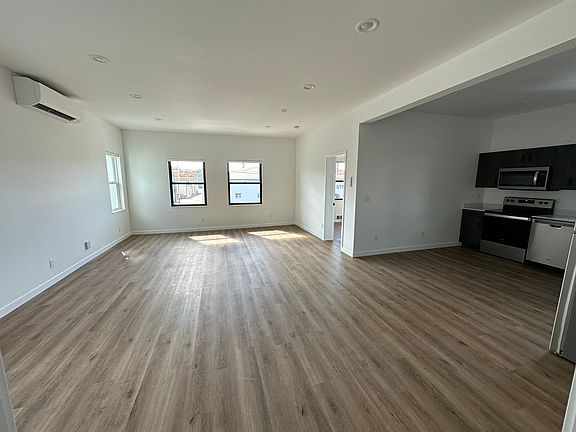 This apartment is on the second floor and features new kitchen with quartz counters and all new appliances. Spacious apartment with lots of room in each room. High ceilings in the great room and kitchen make this feel like a loft-style apartment. Washer and dryer included. Lots of daylight and privacy. Heating and AC! Built-ins make this a very functional space.