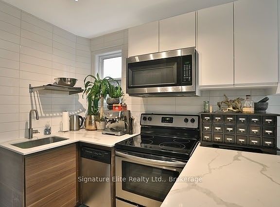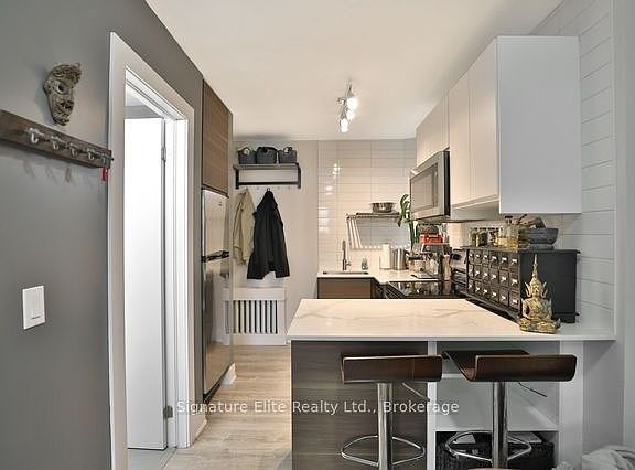 Bright, stylish, and move-in ready - This beautiful 1-bedroom unit in Long Branch checks all the boxes. Ideally located just steps from Lake Shore Blvd W and Humber College, the unit offers a smart, functional layout and contemporary finishes throughout. The kitchen is a standout with sleek quartz counters, stainless steel appliances, and a breakfast bar that opens into the living space for effortless flow. The spacious bedroom features a large window and ample closet space, while the spa-like bathroom adds a touch of luxury to everyday living. On-site laundry offers added convenience. Set in an A+ location, you're just minutes from waterfront parks, trails, top-rated restaurants, shopping, and daily essentials. Direct transit connections along Lake Shore Blvd make commuting downtown quick and easy. Whether you're a student, professional, or downsizer, this turnkey home offers comfort, style, and unbeatable convenience in one of South Etobicoke's most connected neighbourhoods.