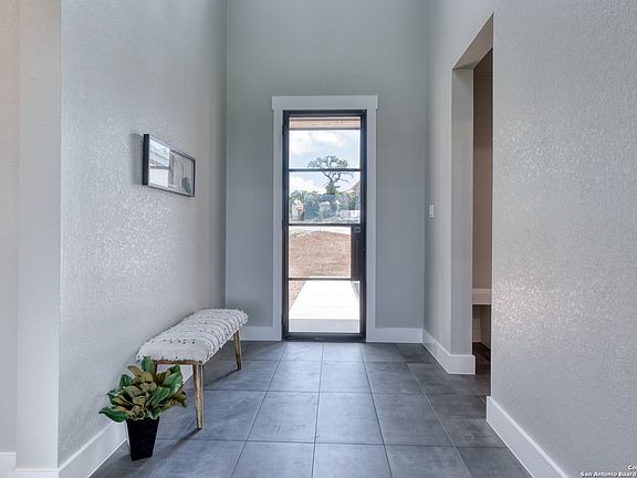 Enter this exceptionally inviting home and find yourself amazed and in awe of the view that captures your attention immediately. The warmth and feel of this split floor plan home will have you feeling charmed and relaxed within moments of entering its wide foyer with the "see through" view to the oversized covered patio. Tucked away in a cul-de-sac, this home has countless features that will take your breath away: huge windows, soaring ceilings, tiled flooring throughout, quartz counters to mention a few. Find your happy place here...this wonderfully appointed home has everything that will make you, friends and family pleased you did! Additional features: Wine bar, exterior collums with iron accents, unique fixtures throughout, mood lighting and more. RJR has so much to offer with its award winning golf course and many activities for the entire family. Short distance to San Antonio, San Marcos and New Braunfels. Open House: June 10, 11am-4pm & June 11, 12N-3pm