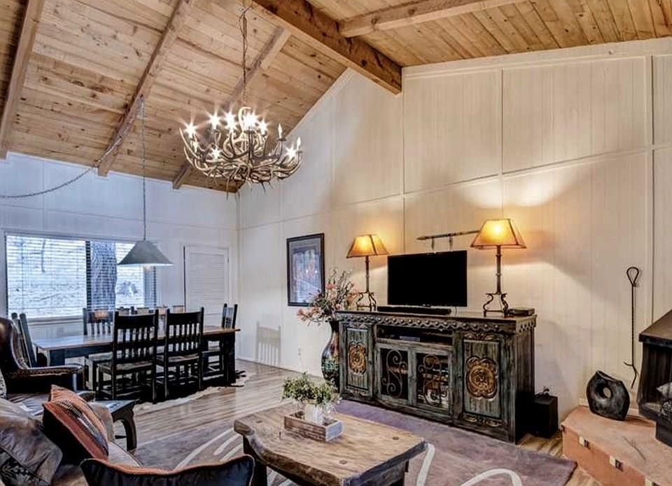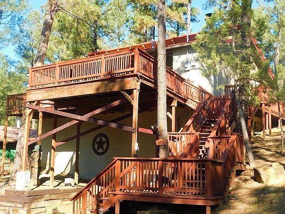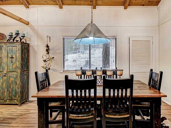 Charming cabin nestled in the tall pines! This 2 bedroom 2 bath cabin is located in the desirable Upper Canyon. Enjoy the open living, dining & kitchen area with beautiful wood ceilings and wood stove. Selling fully furnished and ready to go! There is a cute loft area for little ones to enjoy for extra sleeping or storage. A wonderful large deck sits on the front of the home overlooking the tall pines for entertaining or relaxing. A small fenced in area with a back deck also allows for a place for children or dogs to play. Not to mention refrigerated air!!! Don't miss out on this adorable cabin!