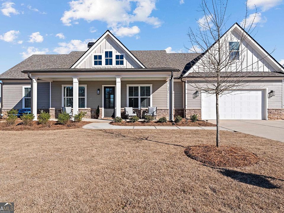 With so many updates that you won't find w/ new construction - yet it's an almost new home! Featuring a well thought out spacious floor plan and tall ceilings, this home is the one you have been waiting for! 4 bedrooms, 2.5 bath! In addition to the spacious living room featuring a beautiful stone gas log fireplace surrounded by custom built ins, this home also boasts a dedicated office and enormous screened in porch! The screened in porch features a second stone fireplace with gas starter (buried propane tank for both fireplaces and option to add gas stove). The kitchen features soft close cabinets, a large island with farm sink, cooktop w/ vent hood, Wi-Fi enabled wall oven and oversized pantry! The garage features overhead storage racks, and the driveway has been extended for ample parking! Enter from the garage to the impressive custom drop zone for convenience! Split bedroom plan, master features impressive bath with his and her vanities, oversized tiled shower and large walk-in closet. Barn doors and pocket doors add to the charm in this amazing home! Tons of room to entertain inside and out! Back yard is fully fenced, outside of the screened in porch a paver patio has been added for more outdoor enjoyment! The GOLF COURSE COMMUNITY of Chimney Oaks has fabulous amenities which include a Jr. Olympic sized swimming pool, tennis courts, fitness center, clubhouse, restaurant and the forge for virtual golf and social events! Just 10 minutes from Banks Crossing, I-85 and the Tanger Outlets!