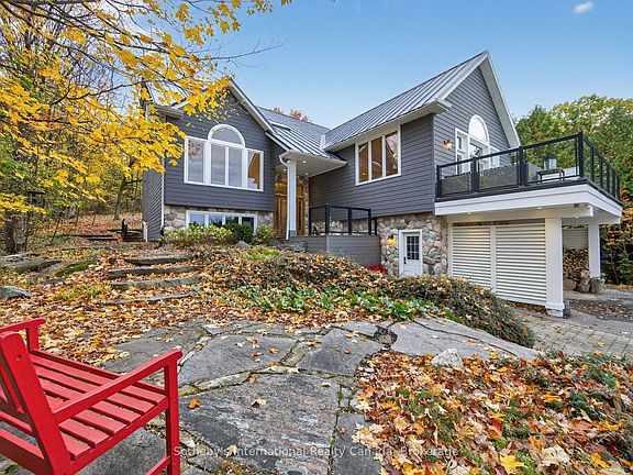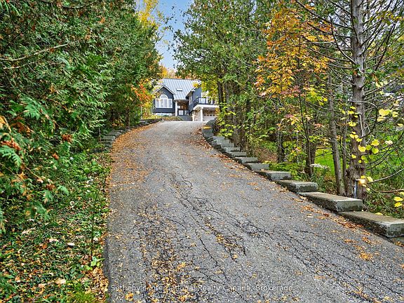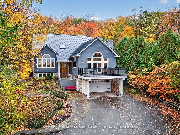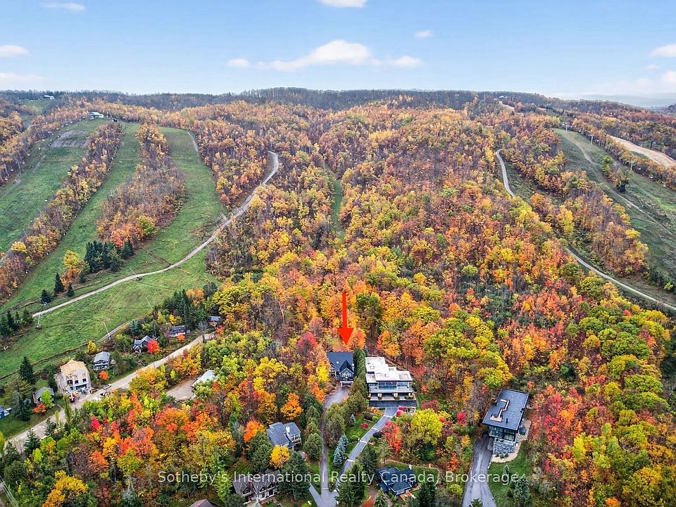 5500+ sq ft Luxury Mountain Retreat at the Base of Craigleith & Alpine Ski Clubs. Experience four-season resort living at its finest in one of Ontario's most prestigious ski community locations - a rare property where you can walk to the slopes or ski right from your door. Nestled on a private wooded lot with a soothing creek, fire pit, putting green, and picturesque bridge path, this residence offers the perfect balance of natural beauty and refined luxury.Boasting views of the ski hills and Georgian Bay, this fully renovated (2016) home features soaring ceilings, expansive windows, and three fireplaces-including a floor to ceiling stone gas fireplace in the great room, a cozy wood-burning fireplace in the upper living area, and additional gas fireplace in the family room creating a relaxing ambiance in multiple areas . The gourmet kitchen is a chef's dream, featuring high-end appliances, an oversized island with seating for eight. The open-concept dining area, framed by expansive bay views, comfortably seats ten, beer taps & multiple wine/beverage fridges-perfect for hosting après-ski dinners and family gatherings. Home includes a games room, gym, and lower-level walkout. After a day on the slopes, enter through the grand mudroom with custom cabinetry and heated floors, offering seamless comfort and function. Main floor primary suite opens directly to the back deck and features a spa-like ensuite with a glass shower, soaker tub, and dual sinks. Additional luxuries include two laundry rooms with stainless steel front-load appliances and whole-home speaker system.Outdoors, enjoy beautifully landscaped grounds with a winding, illuminated driveway, a hot tub overlooking the bay, and a basketball hoop. The steel roof adds enduring quality and peace of mind.Whether you're skiing, hiking, snowshoeing, or teeing off at nearby golf courses, this is the ultimate four-season lifestyle. Just minutes from Blue Mountain Village, Thornbury, and Collingwood's shops and bistros.