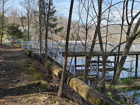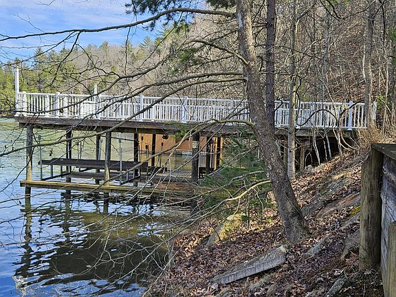 This beautiful wooded waterfront lot with party deck double slip boat dock is an excellent value. This property is located in Lakeshore Terrace which is located on a very peaceful area of Smith Mountain Lake, just above the newly built Hardy Bridge. A gravel driveway meanders through the 3.21 acre property offering a beautiful walk to the dock & for viewing this property. Stunning boulder outcroppings add intrigue, interest & landscape potential to this property. Boat dock is sold ''as is'' & appears to be well built & in overall good condition. Decking boards on party deck need replacement & are NOT to be walked on. Take care when walking down the stairs to the lower level. No electricity at dock. Nice community center at the subdivision entrance.