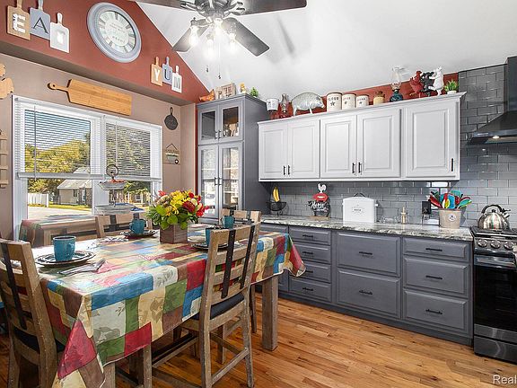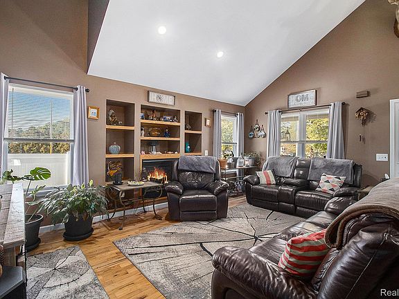 Fabulous home completely remodeled in 2022-2023 NO STONE LEFT UNTURNED. Gorgeous new kitchen and baths, custom Amish made cabinets, granite countertops, inviting island that flows into living room, for entertainment purposes. Tile back splash, many built-ins and pot cabinets. High vaulted ceilings, living room with gas FIREPLACE and built-in custom shelving. New roof with metal valleys 2025, Asphalt driveway, poured cement sidewalks and composite steps accessing each facet of the home and grounds. Amazing New 26 x 50 DREAM Garage and workshop, SUPER INSULATED and HEATED, OSB finished interior, full staircase to the 2nd floor, full storage area. Setup for YEAR ROUND FUN, with Insulated Over-Head door to side yard for grilling, entertaining, relaxing in the pool or enjoying the crackle of an evening fire. Private yard with white vinyl fencing. This home/yard is an OASIS. Stamped concrete patio, gazebo, above ground pool, fire pit. Incredible paver block landscaping, added lighting, electric plugs, exterior faucets, security cameras. Covered front porch with brick paver floor!! MUST SEE. Schedule an hour to see all the great features of this home. Full crawl space with cement floor, clean, deep, dry and storage space galore!! Ortonville a great walkable community with many activities thru the year, parks, excellent library. BALL courts and t-ball fields at the end of the street ! HURRY.