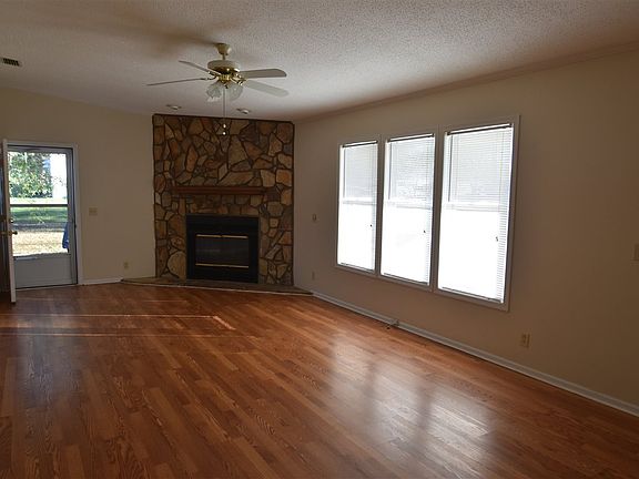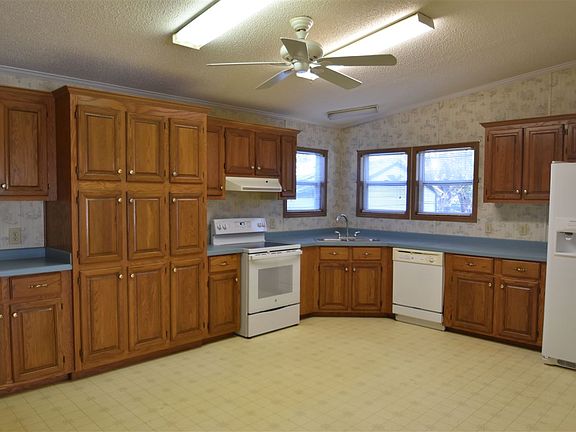 Immediate Double wide on .89 acre lot. Laminate hardwood floors flow through the greatroom, hallway, and bedrooms. Stone, corner fireplace is in the greatroom. The eat-in kitchen ahs stained cabinets, new stove, and a refrigerator, and adjoining laundry room. Master bedroom has a walk in closet and a full bath with jetted tub. Deck overlooks fenced yard. Two outbuildings. Larger outbuilding to the right of the house has electricity. Roof replaced in 2015.
