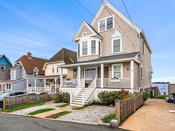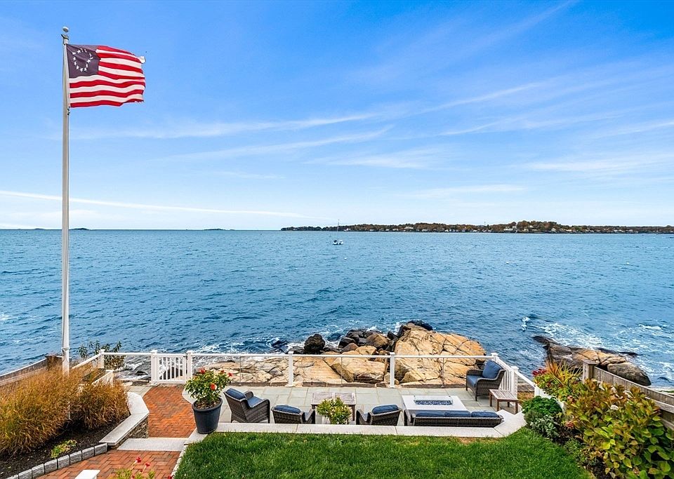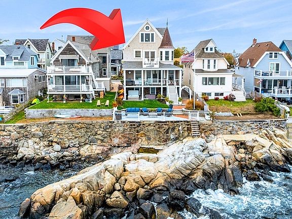 Rare opportunity to own a breathtaking waterfront home in coveted Juniper Point, fully renovated in 2018 with refined interior finishes and water views throughout. Wake to the sound of waves and savor your morning coffee on a private ocean-view balcony off the primary suite. The open-concept main level features a chef's kitchen, large dining area, and open living room with fireplace that opens to a back porch, lush yard, and waterfront patio with hot tub—ideal for entertaining. The 2nd floor offers a serene primary suite with ensuite bath and balcony, guest bedroom, guest bath, and large laundry room. Two additional bedrooms and a half bath occupy the 3rd floor, plus a finished basement with custom built-ins and storage/workshop space. Enjoy sunsets and friendly hellos from the charming front porch. Neighborhood amenities include a sandy beach, playground, and Salem Willows. This home includes an opportunity for nearby mooring.